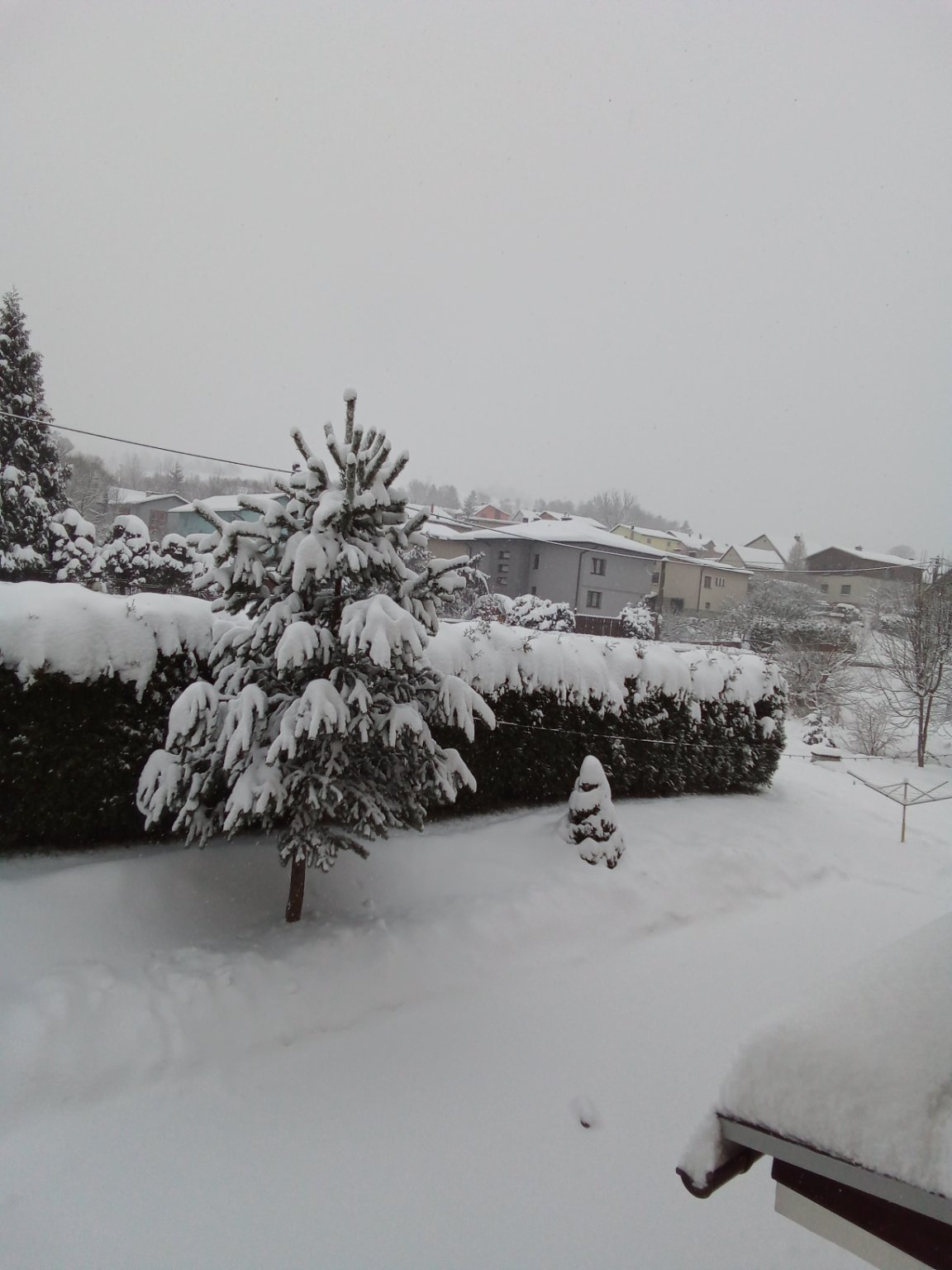 Klidno, nebo jen slabý SZ vítr, slabé sněžení, tlak 1020 hPa