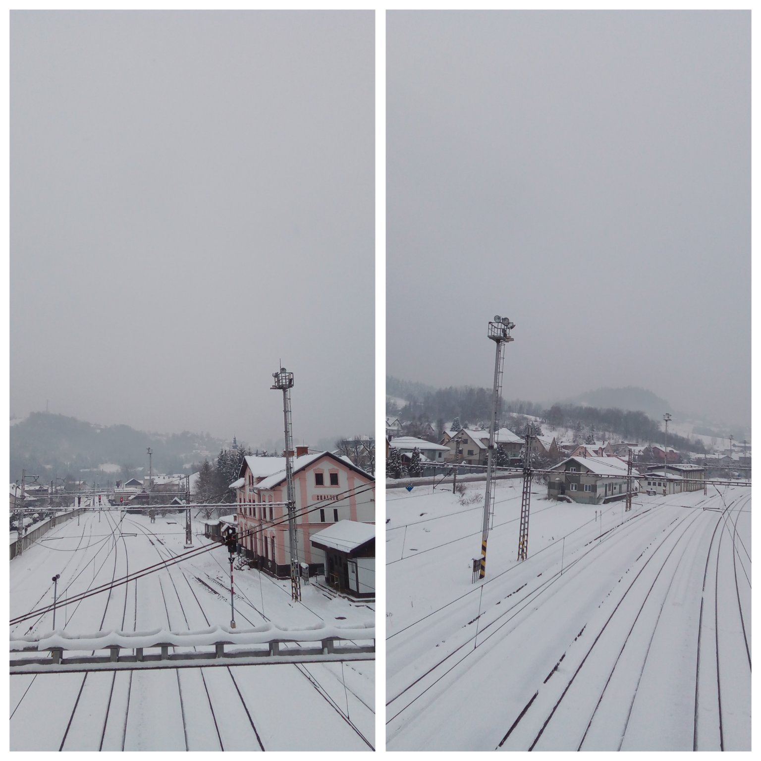 Klidno, sněhová pokrývka odtává, výška cca 8cm.