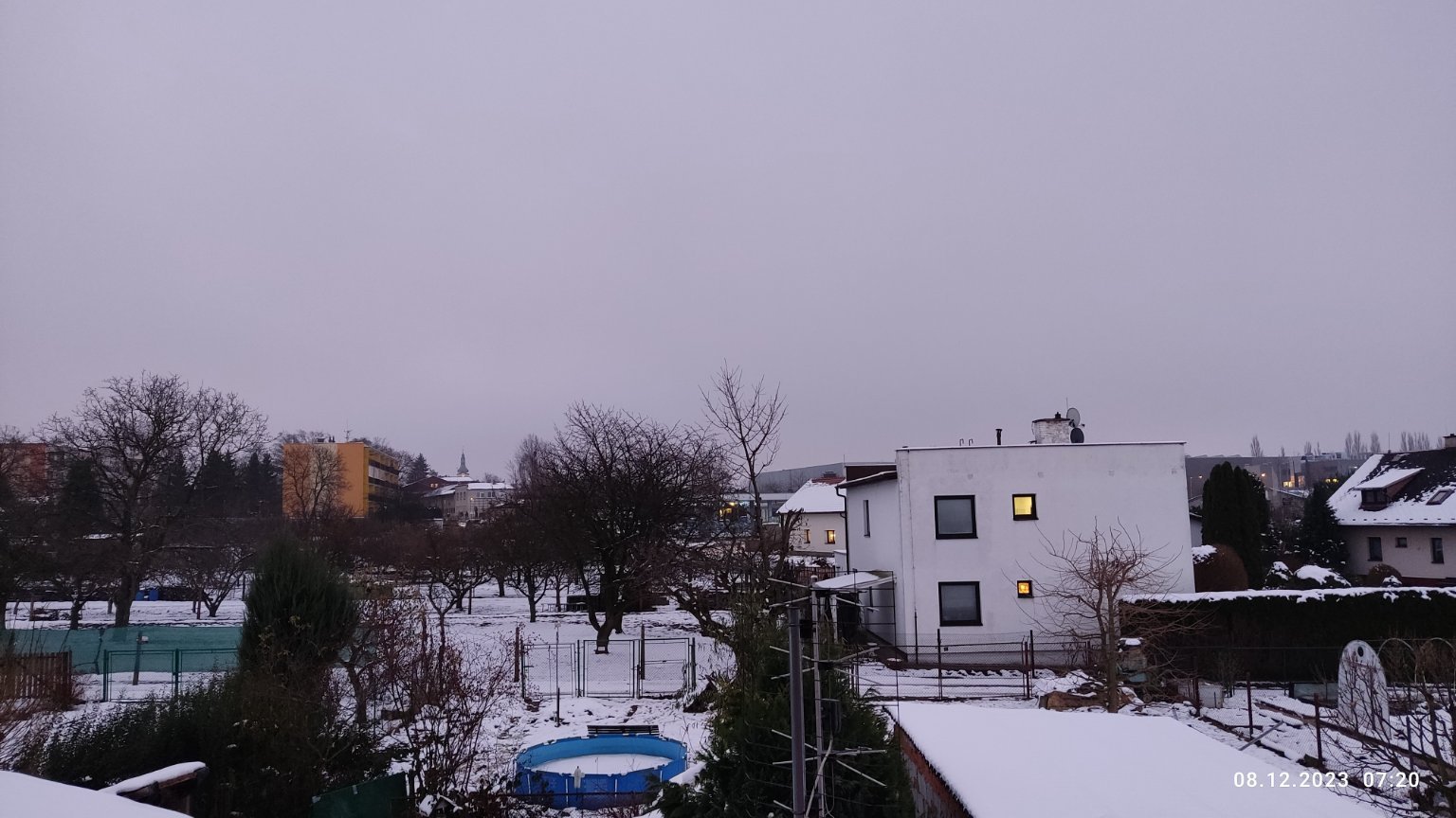 -3,4°C, Jasno až skoro jasno, Sníh: -. Velké rampouchy na Tescu Expres.