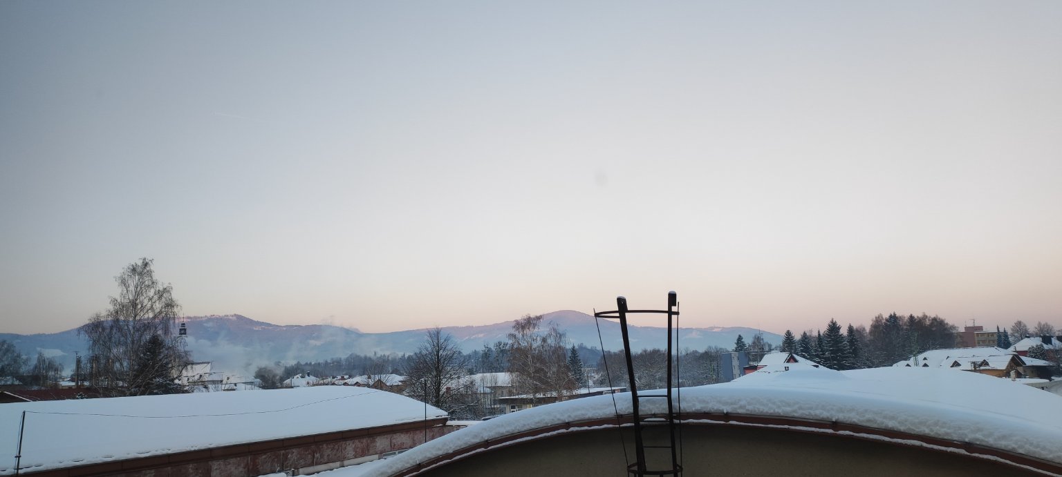Skoro jasno, přízemní mlha. Teplota: -7.2°C, Vlhkost: 96%, Tlak: 1015.3 hPa (klesá).
