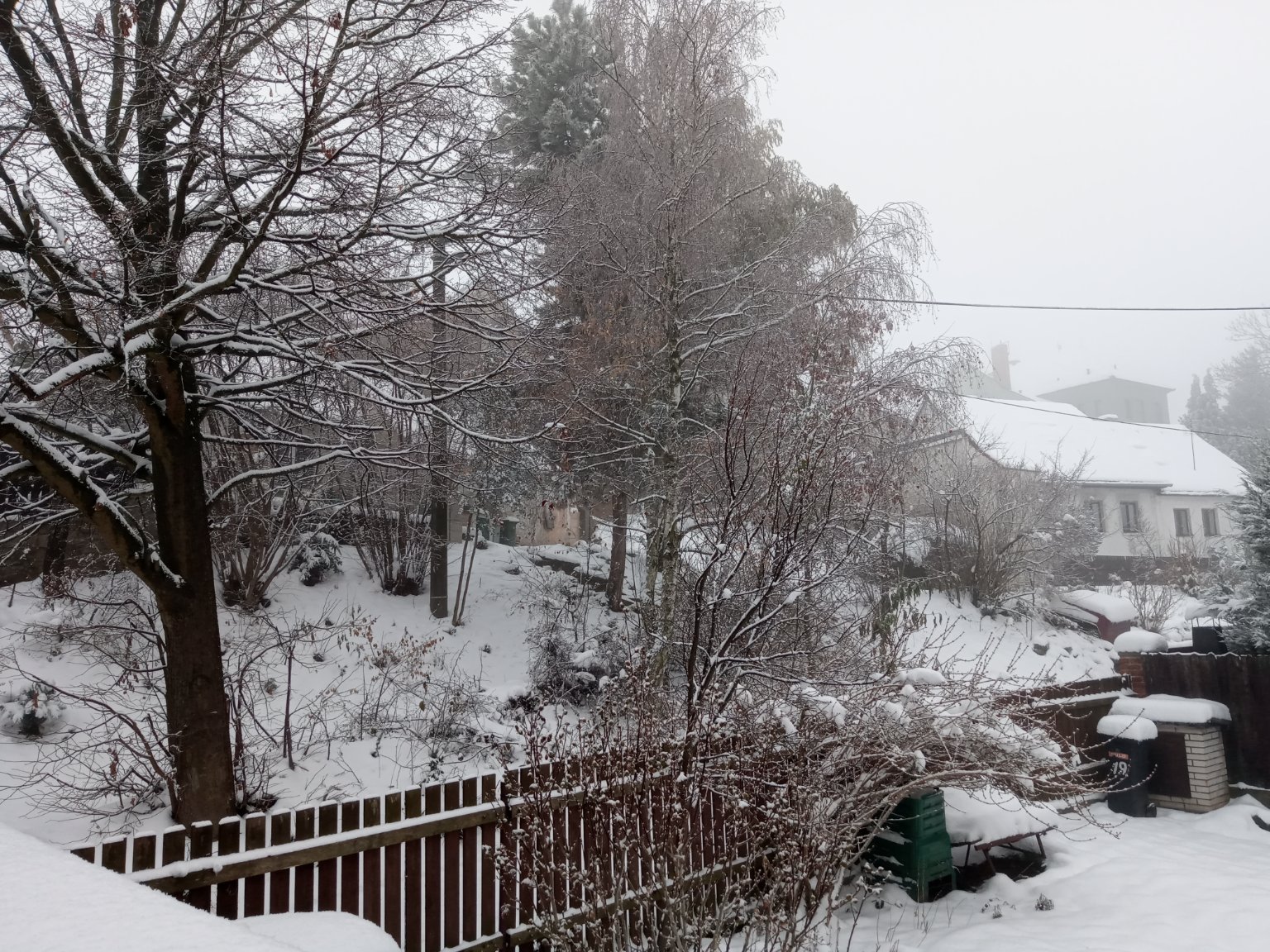 0,2°C, Slabé sněženi, Sníh: 21 cm. Tak teď to už je fakt ultimátní rampouch!