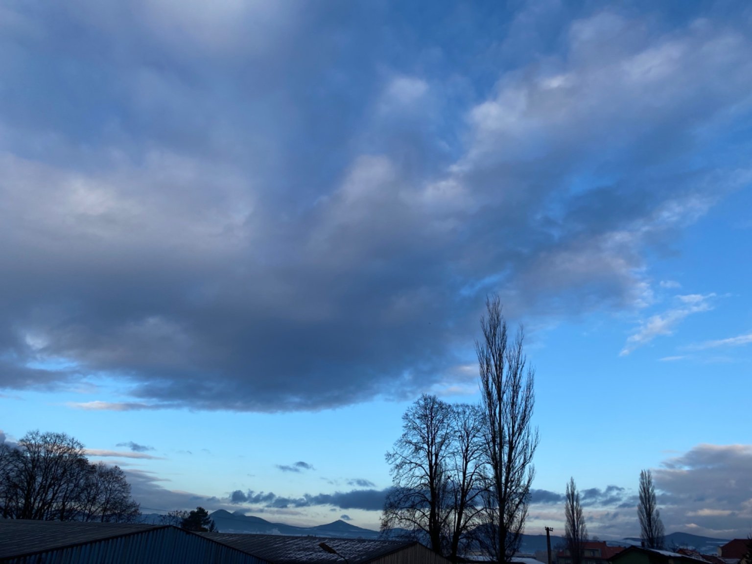 Oblačno, po slabé přeháňce. Vítr 0,5 m/s JZ. Min T dnes 2,7°C