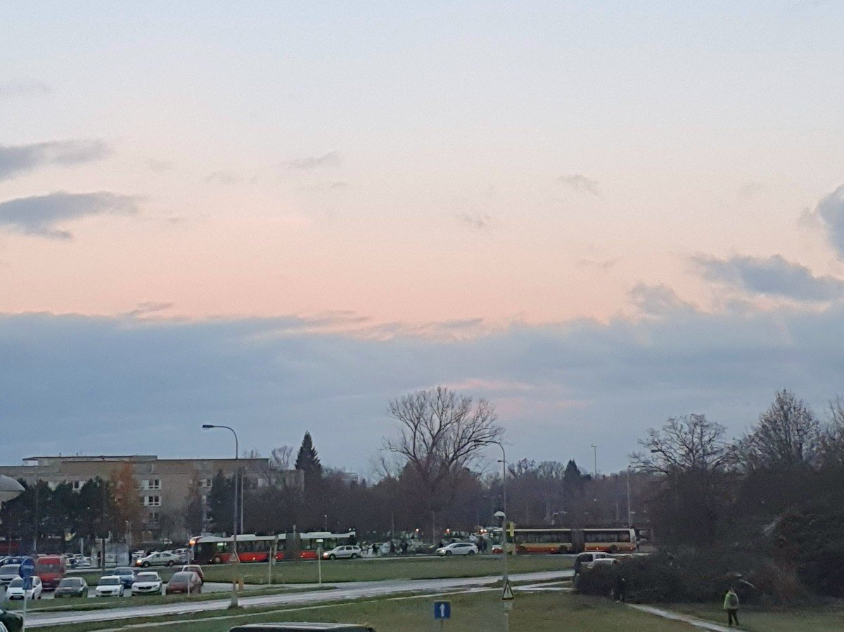 Oblačno, klidno, tlak 1009 hPa.