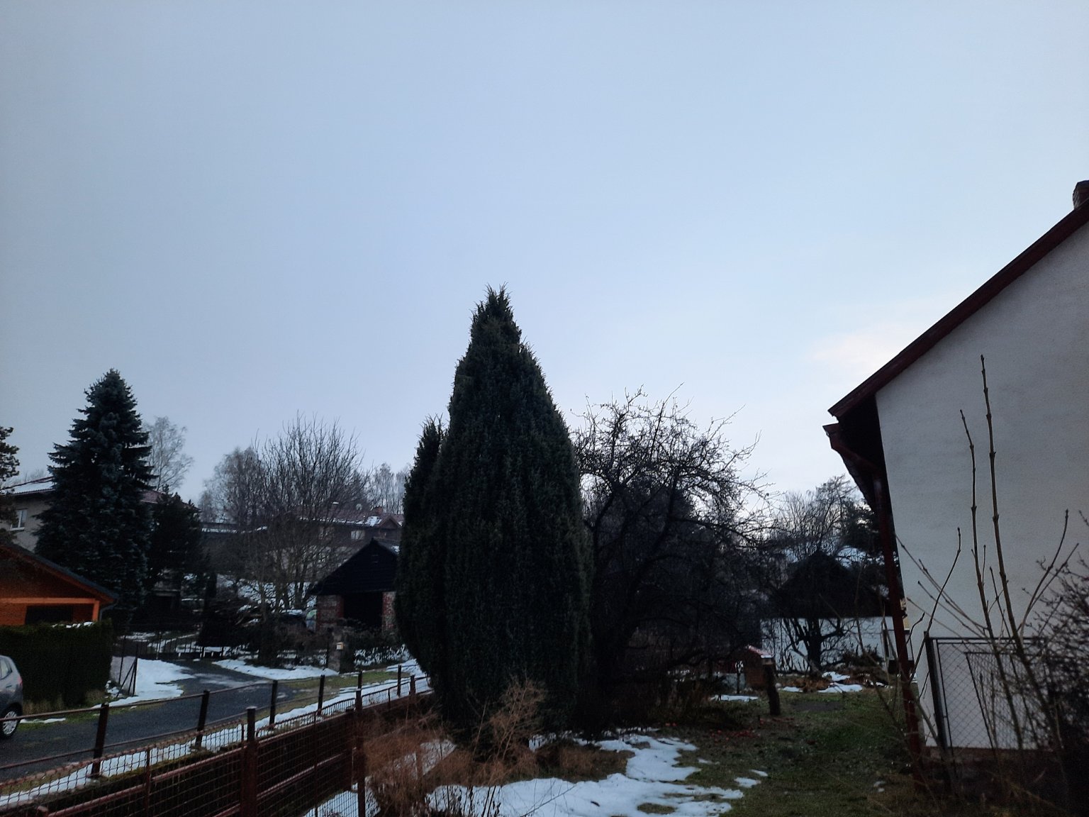 Slabý trvalý déšť, kouřmo, klidno.