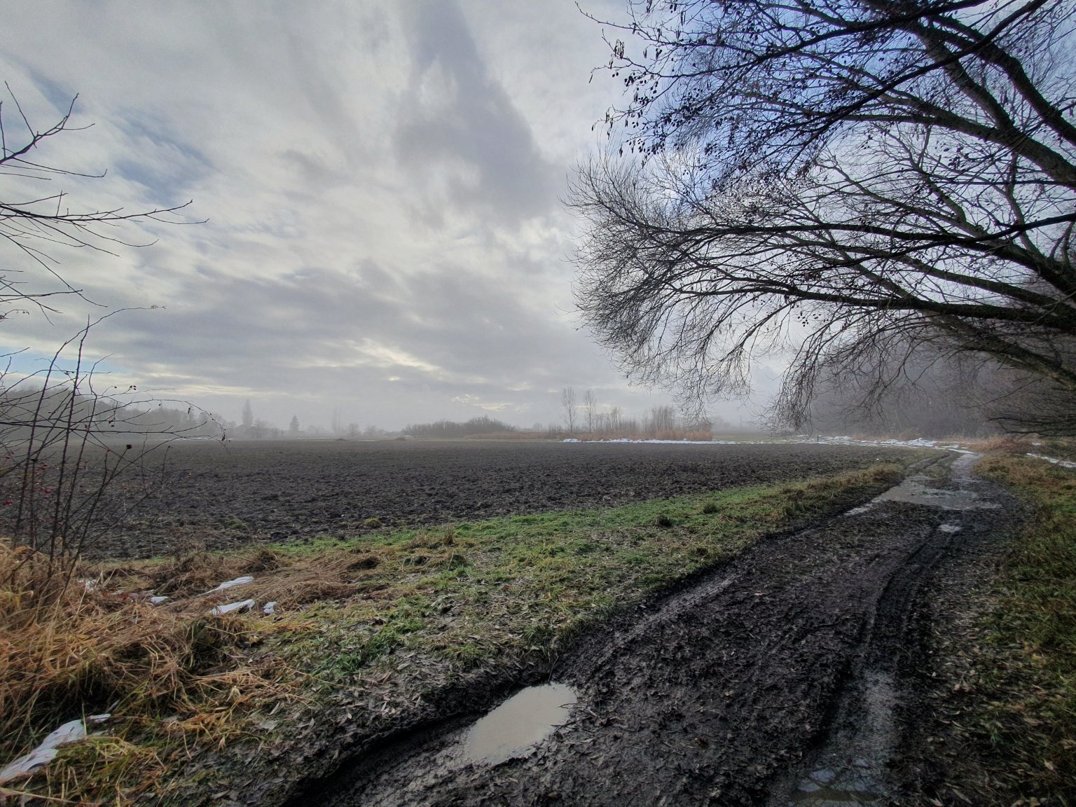 Většinou skoro zataženo, na kopcích zbytky mlhy. Vítr do 1 m/s. Vlhkost 98%