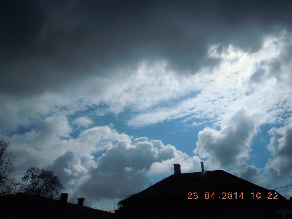 Oblačnost se protrhala,tvoří se kupy,tlak 1011hPa,vlhkost 81%,do od večera napršel 1mm srážek.