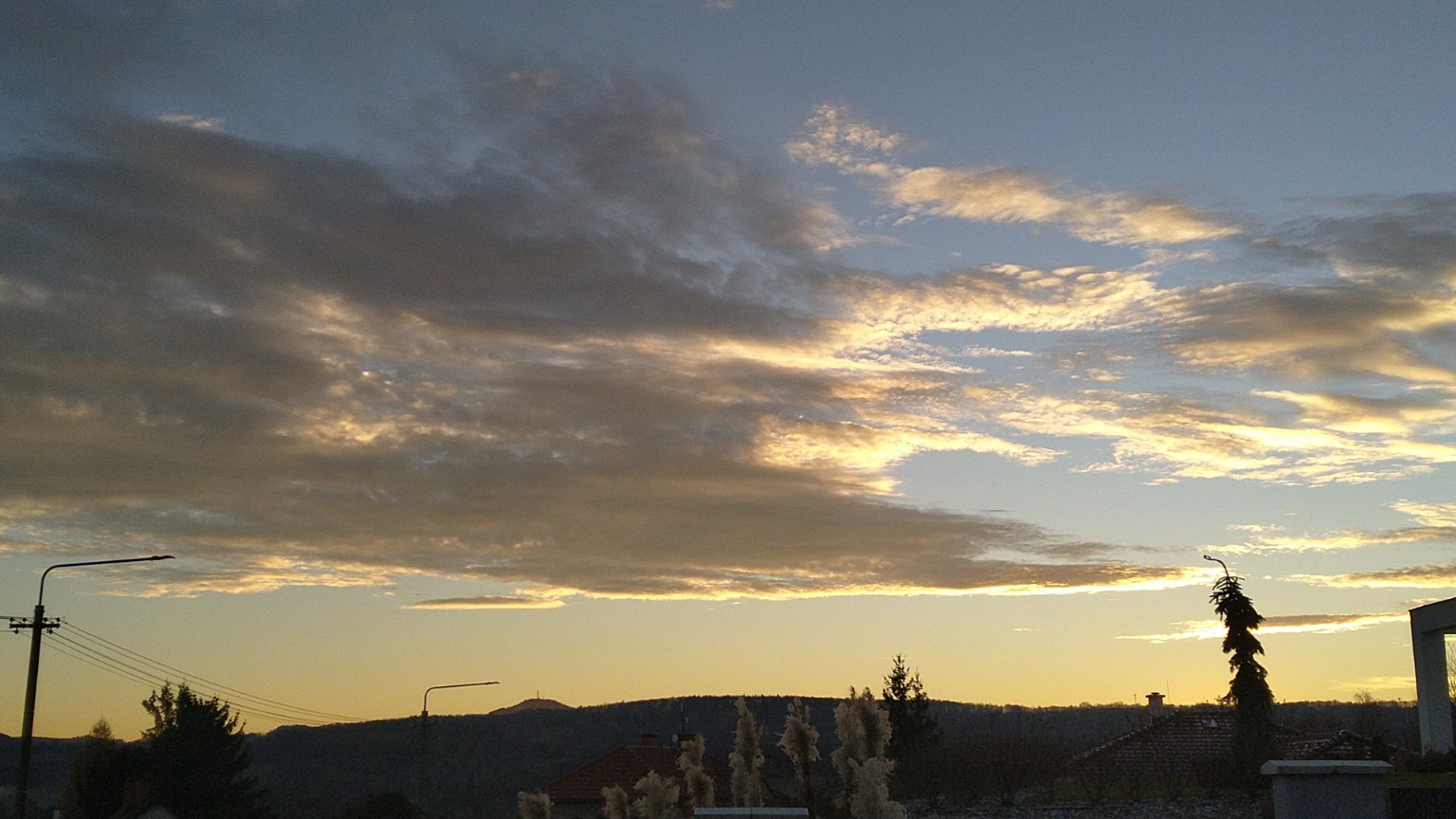 6,4°C, Jasno až skoro jasno, Sníh: nesouvislý. Zbytky sněhu v Antoničku a hezky zasněžena Kozubová, slunce dávno zapadlo.