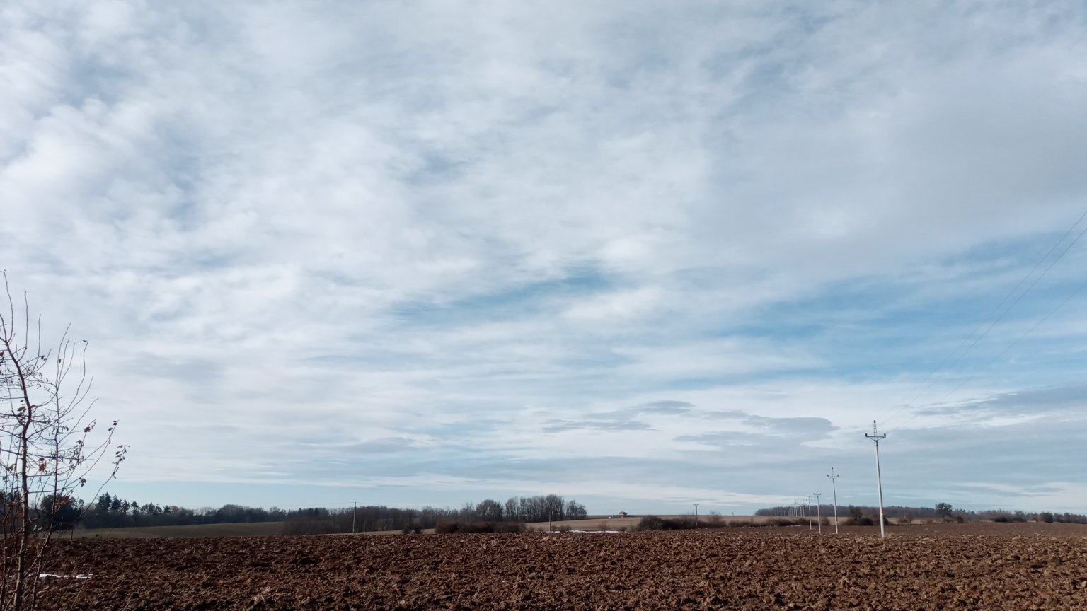 Klidno, ve stínu zůstává jíní po nočním mrazu -1,3°C.