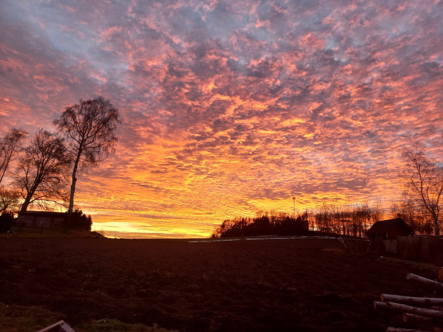 Dnes opět barevné nebe při západu slunce signalizující změnu počasí.