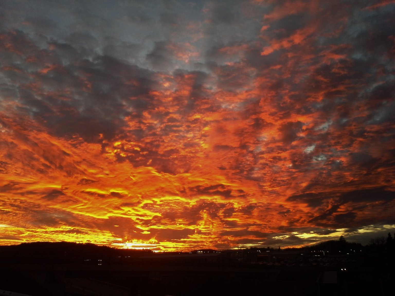 Oblačno, nádherný západ slunce, celá obloha září, rychle se ochlazuje. Teplota: 3.8°C, Vlhkost: 89%, Tlak: 1017.5 hPa (klesá).