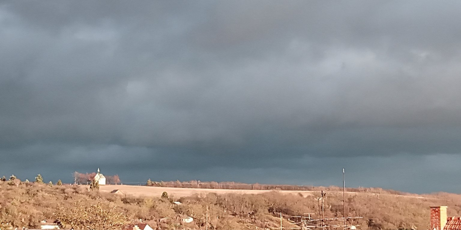 3,5°C, Zataženo až oblačno, Sníh: 0 cm. Po sněhu už zbyly jen kupky, ale nad farmou a na některych střechach je ještě nesouvislý.