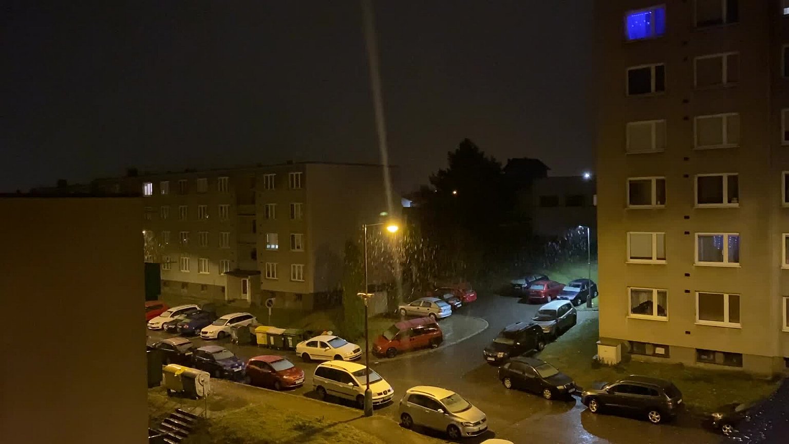 Krupky s deštěm, teplota mírně klesla, přechodně silný vítr. Byl slyšet z dálky hrom.