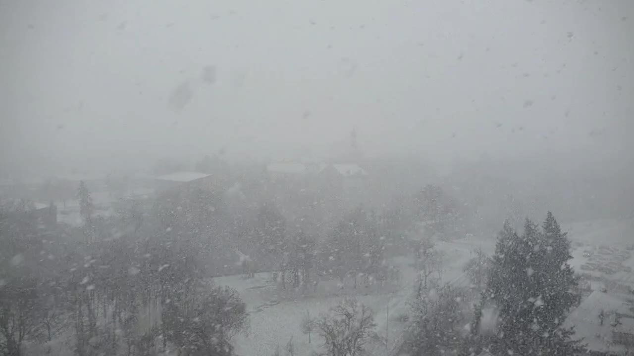 Dneska již druhá takto vydatná přeháňka, vločky jak pětikoruny. Při přeháňkách vždy pokles teploty na cca 0-1°C.