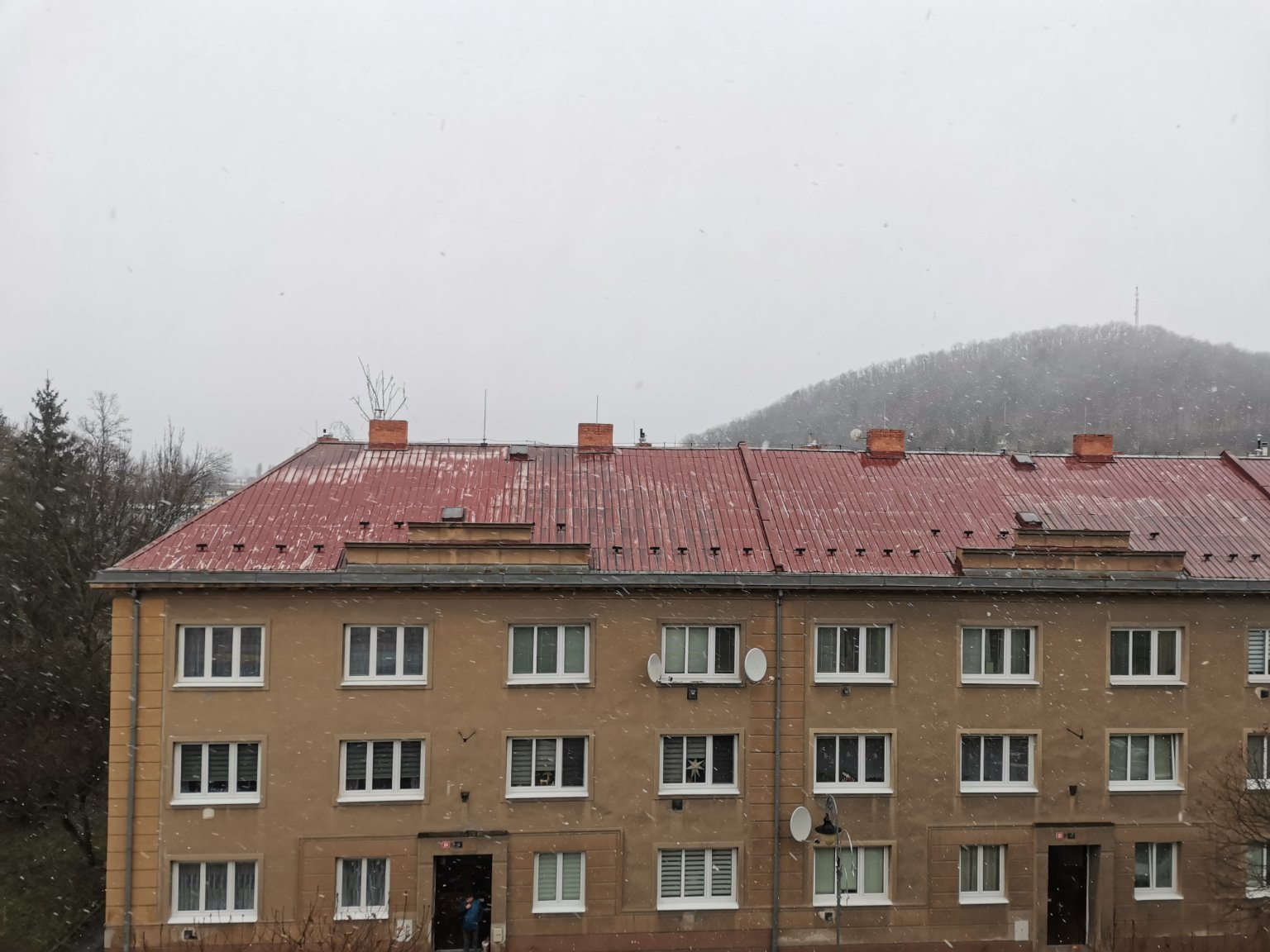 -°C, Mírná sněhova přehaňka, Sníh: 0 cm. Poprašek roztál... Zase sněži.