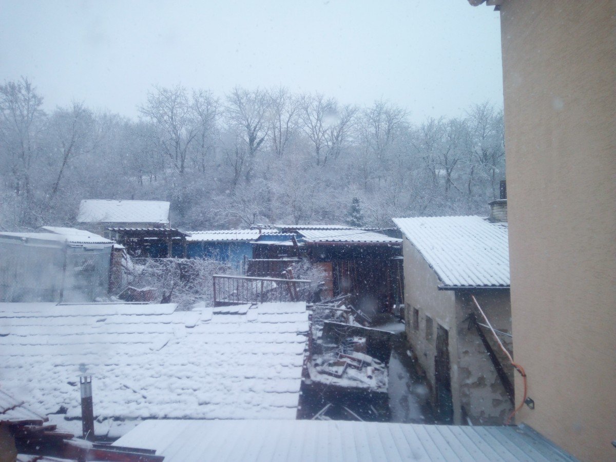 Padají obrovské sněhové vločky.