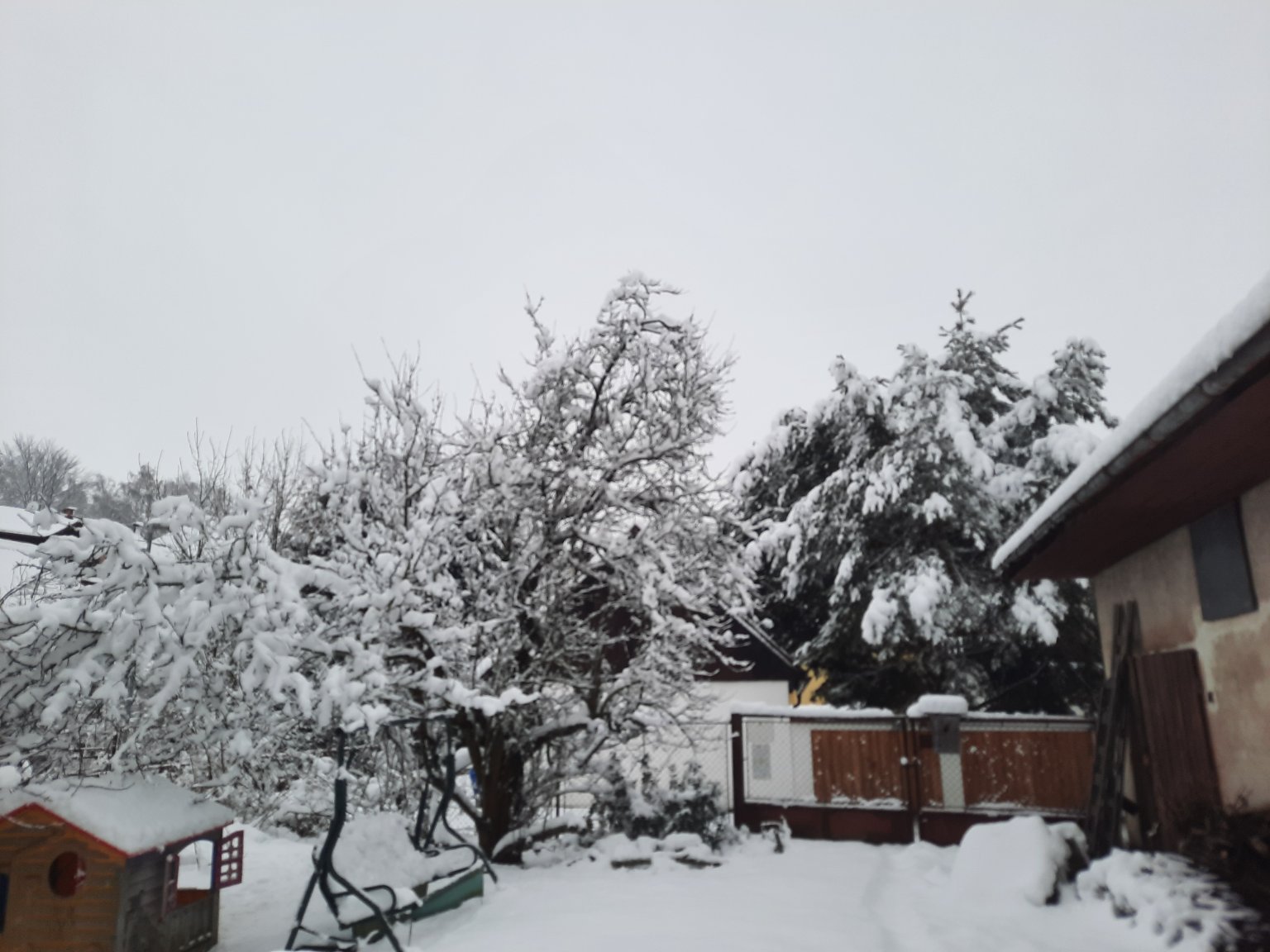 Sněhu pořádně přibývá, zřejmě to bude víc jak začátkem prosince do večera, ale dostali jsme se nad bod mrazu výrazněji, z aut a z balkonů to padá..