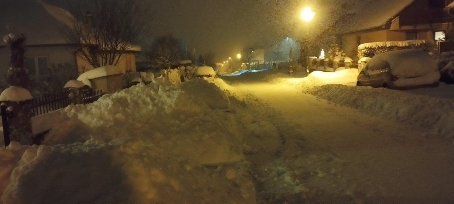 Trvale mírně sněží. Oproti odpoledni už sněží méně, těžký a mokrý sníh však i nadále přibývá poměrně výrazně. Vane slabý západní vítr, tlak: 1002hPa.