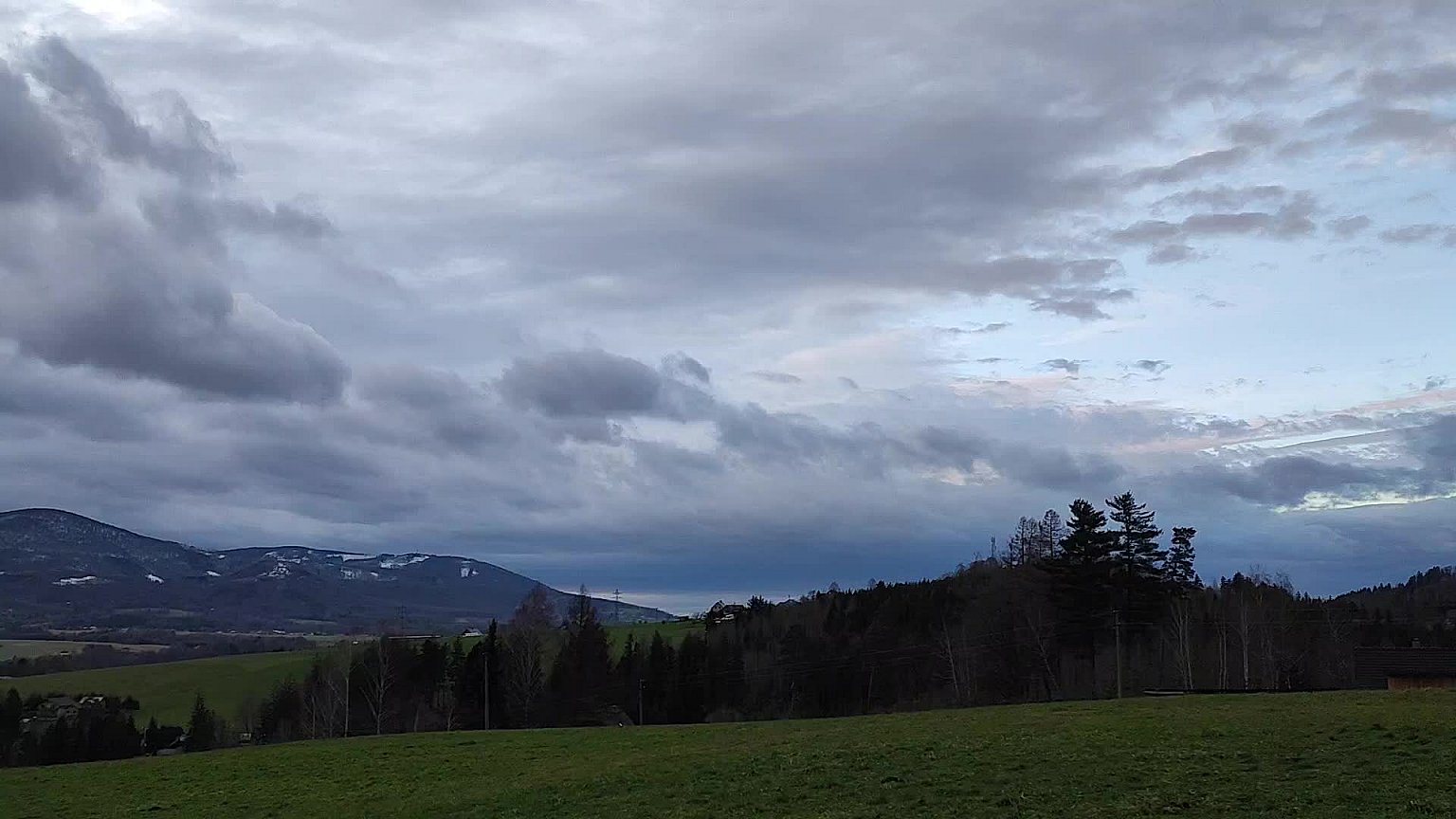 Čerstvý vítr s nárazy do 50 km/h, tlak 1008 hPa, vlhkost 80%