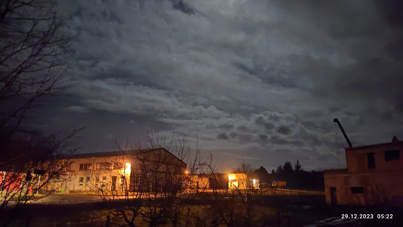 Polojasno, klidno, přízemní mrazík, tlak 1013 hPa.