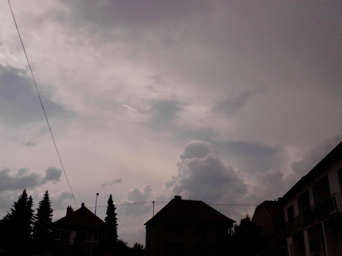 Rozpršelo se (0.3 mm/h), tlak 1006.5 hPa, vítr 4.1 m/s-SZ, vlhkost 81%, rosný bod 11.8°C, pocitová teplota 14.9°C, dohlednost 35km.