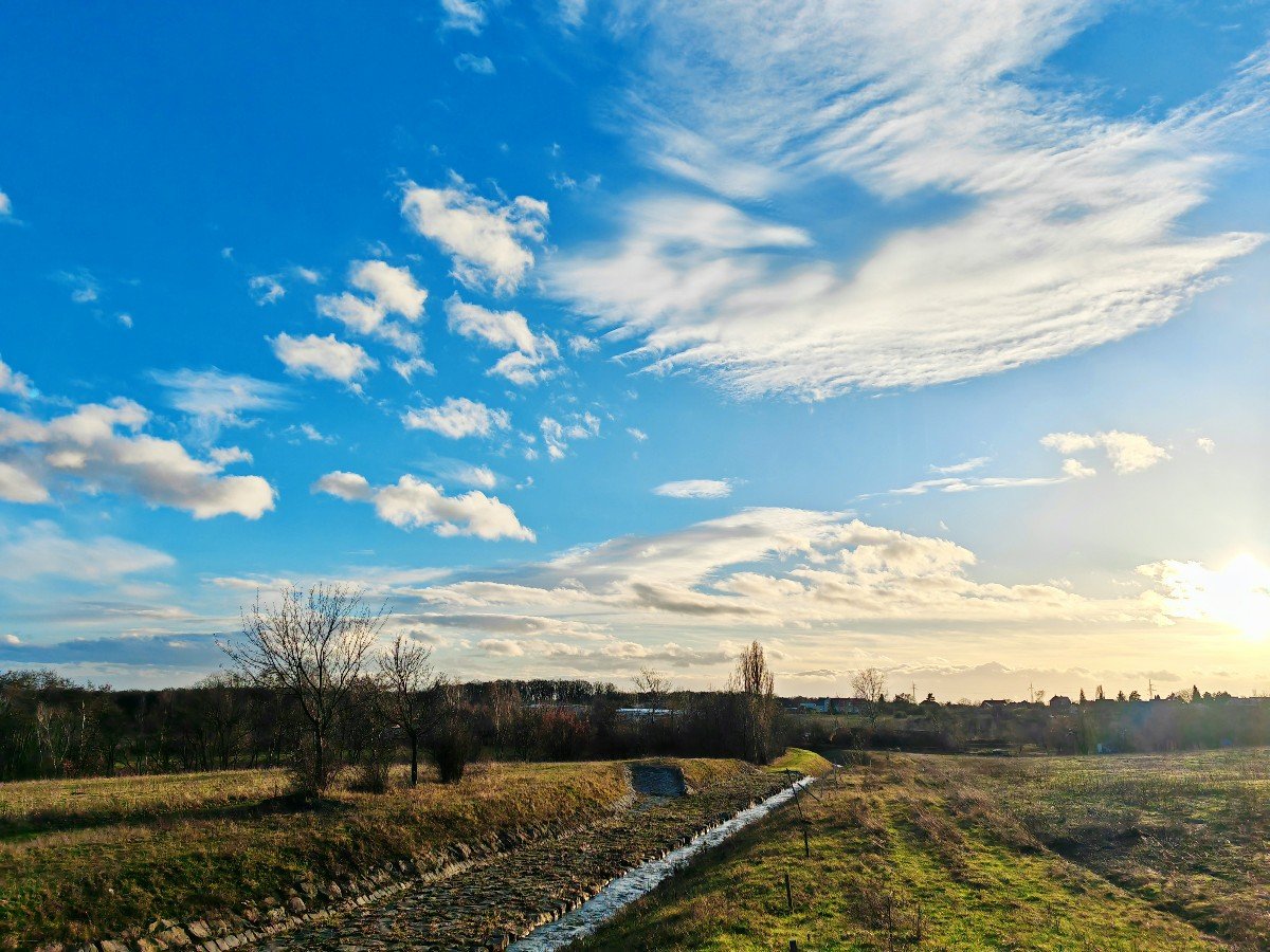 polojasno, výhled na České Středohoří. Daleký dohled díky čerstvému větru
