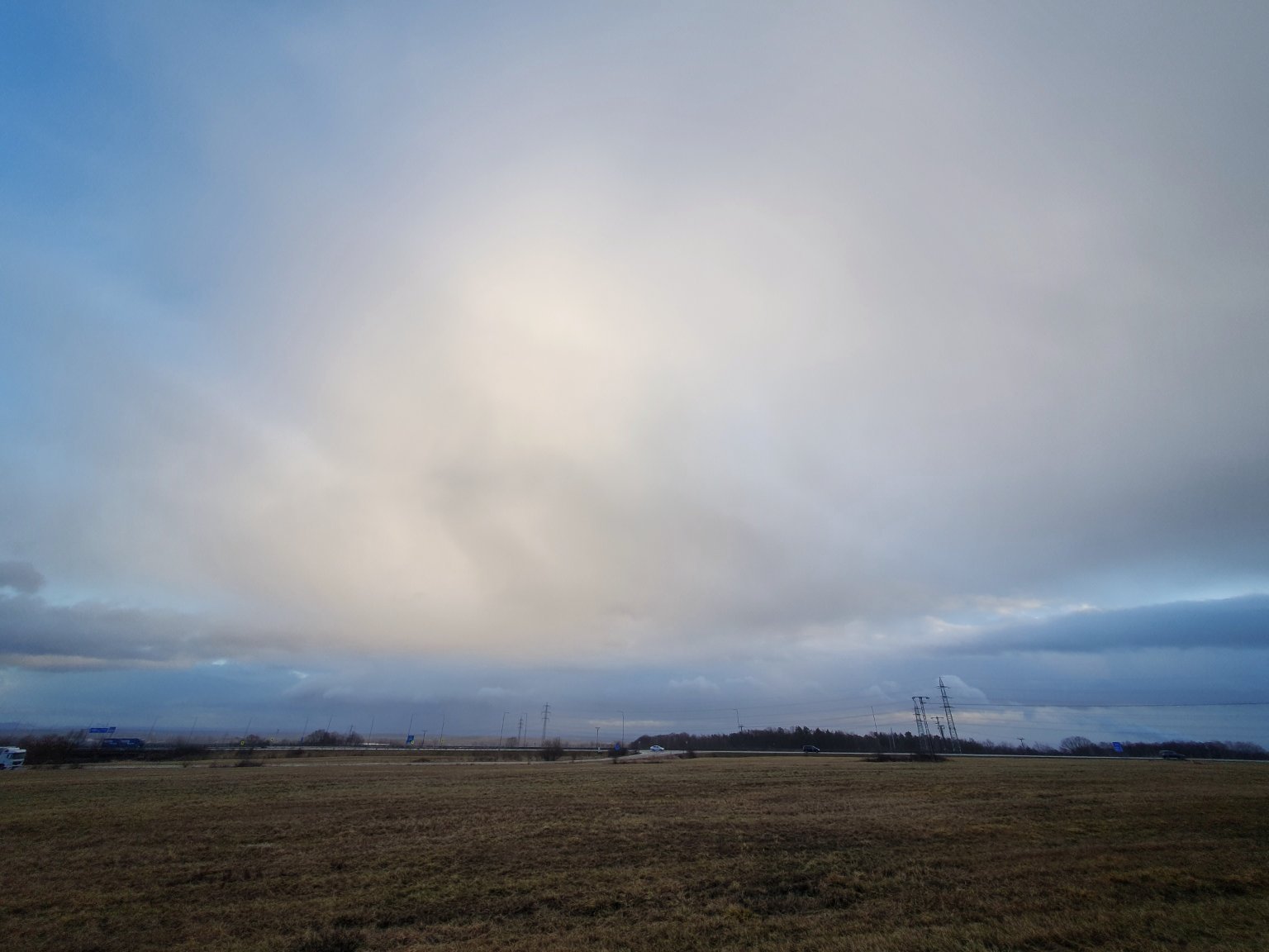 Občasný déšť. Tlak 998 hPa.