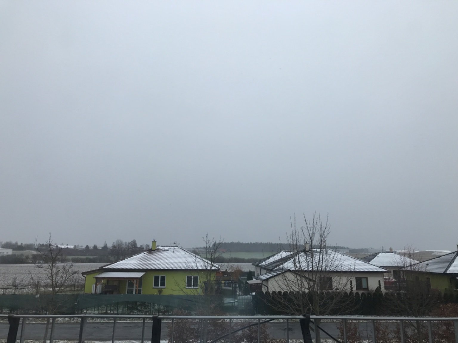 Slabě sněží. Fouká.