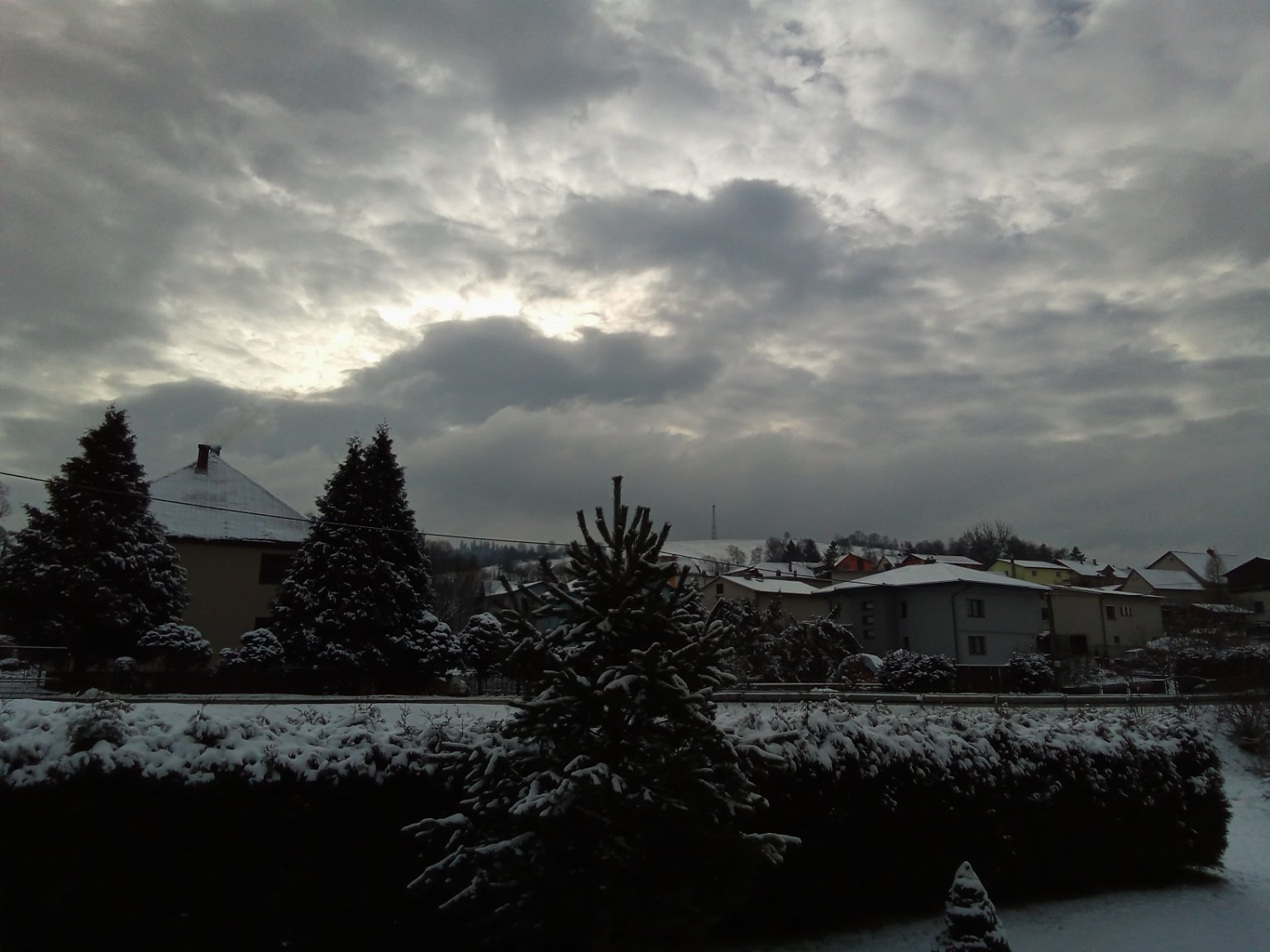 Aktuálně převažuje většinou zataženo a slabounké občasné sněžení, fouká většinou slabý vítr a je mrazivo