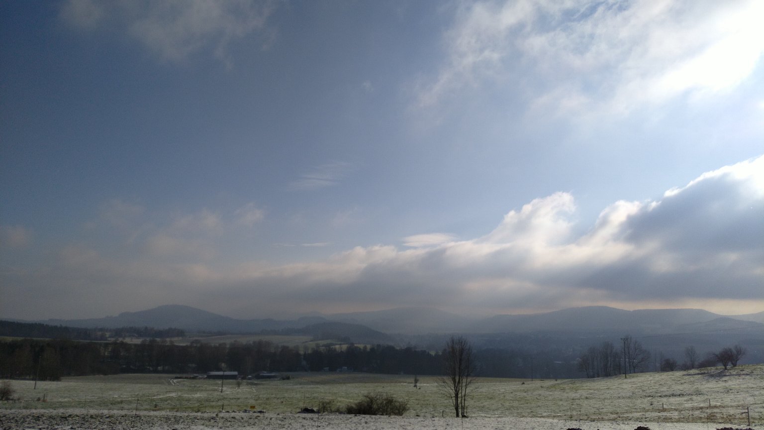 Mírný, občas čerstvý vítr od SV. Sněhový poprašek.