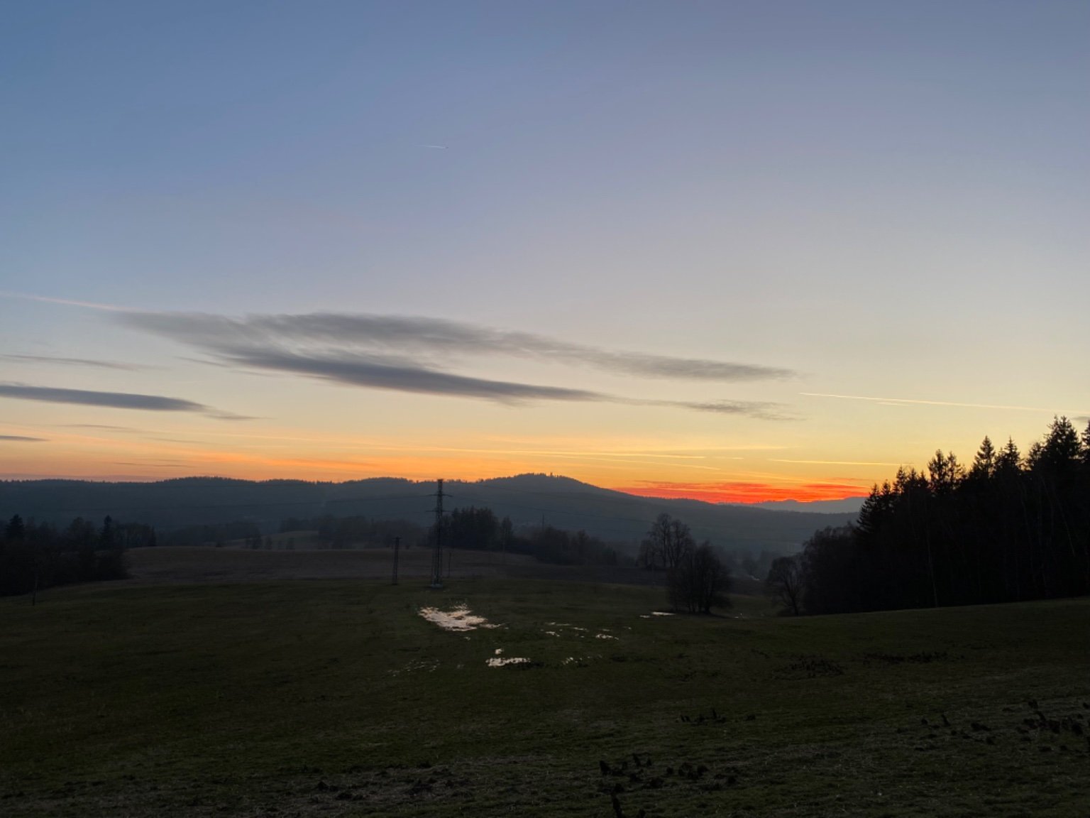 Další ledový den. Ráno teplota klesla až na -13,1°C. Díky červánkům je dnešní odpolední nebe doslova v jednom ohni. Vane slabý jihozápadní vítr, tlak: 1025hPa.