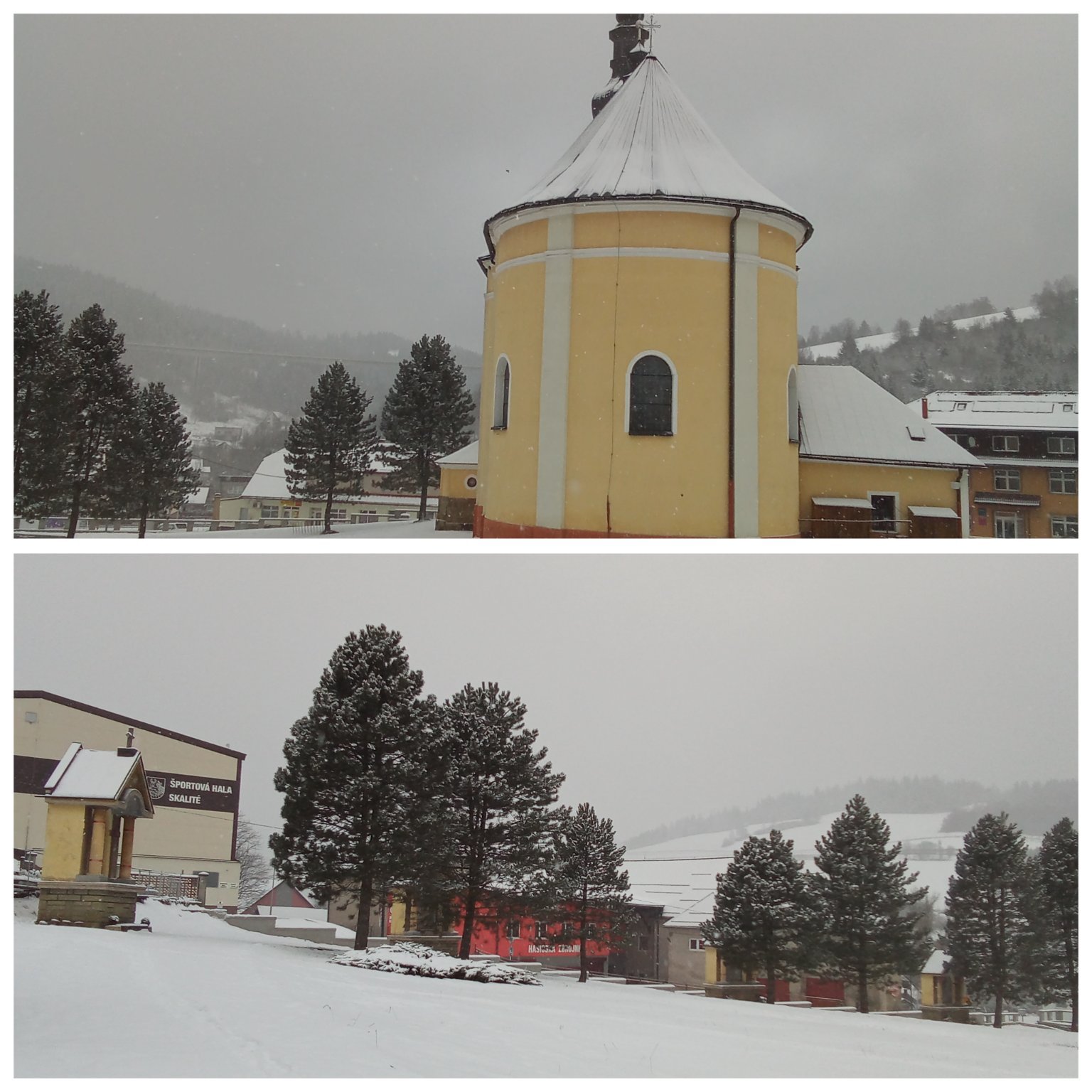 -3,4°C, Velmi slabé až zanedbatelné sněženi, Sníh: 9,5 cm. Připadlo celkem dost sněhu, tolik mělo napadnout do neděle a už to stihlo napadnout dneska, třeba ještě něco napadne.