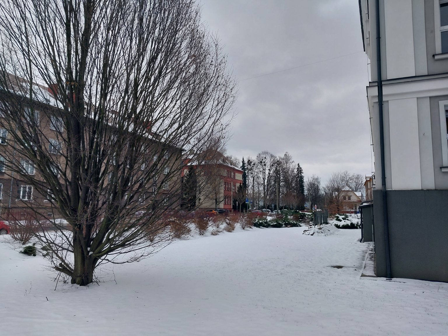 zataženo, občas slabé sněhové přeháňky, -1°C