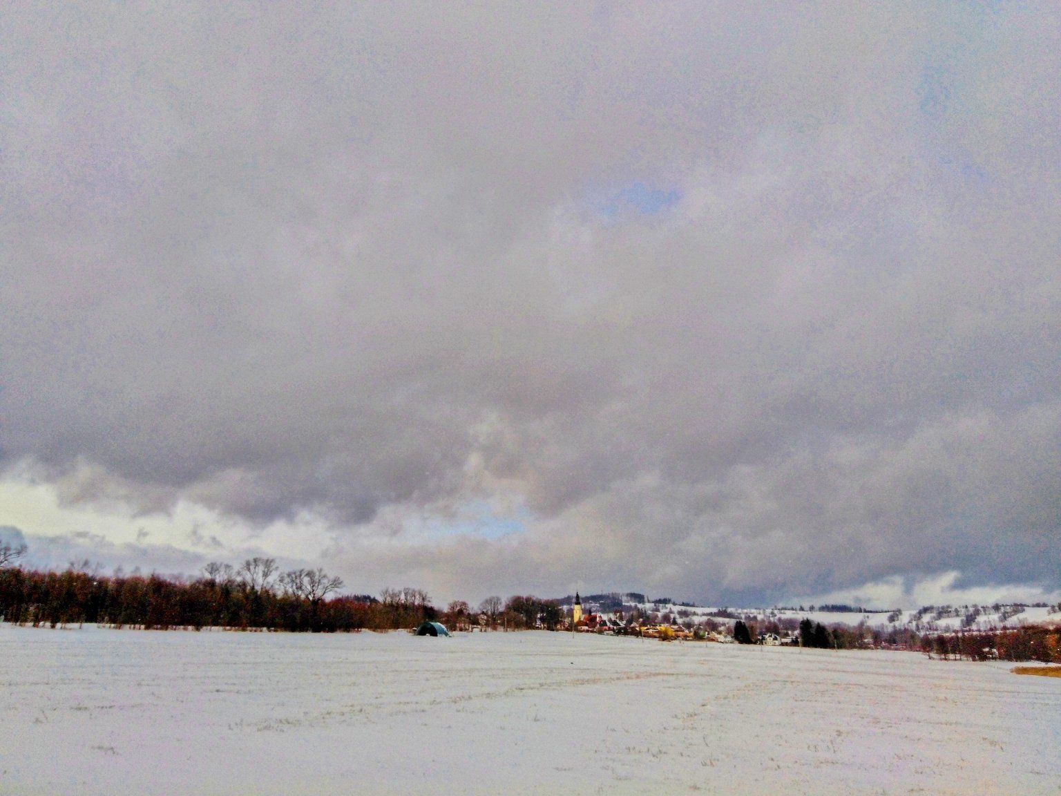 -0,4°C, Zataženo až oblačno, Sníh: 10 cm. Zítra hladí ledovku a potom za týden má být zase oteplení... Zima na h****!...