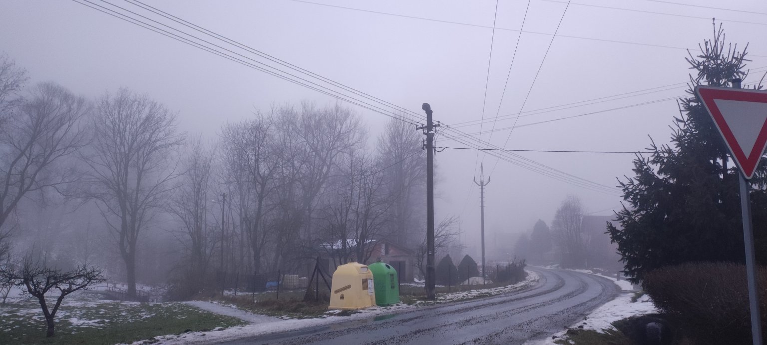 2,1°C, Zataženo, Sníh: nesouvislý. Mlha odchází, ostrá hranice mlhy! Nádhera!
