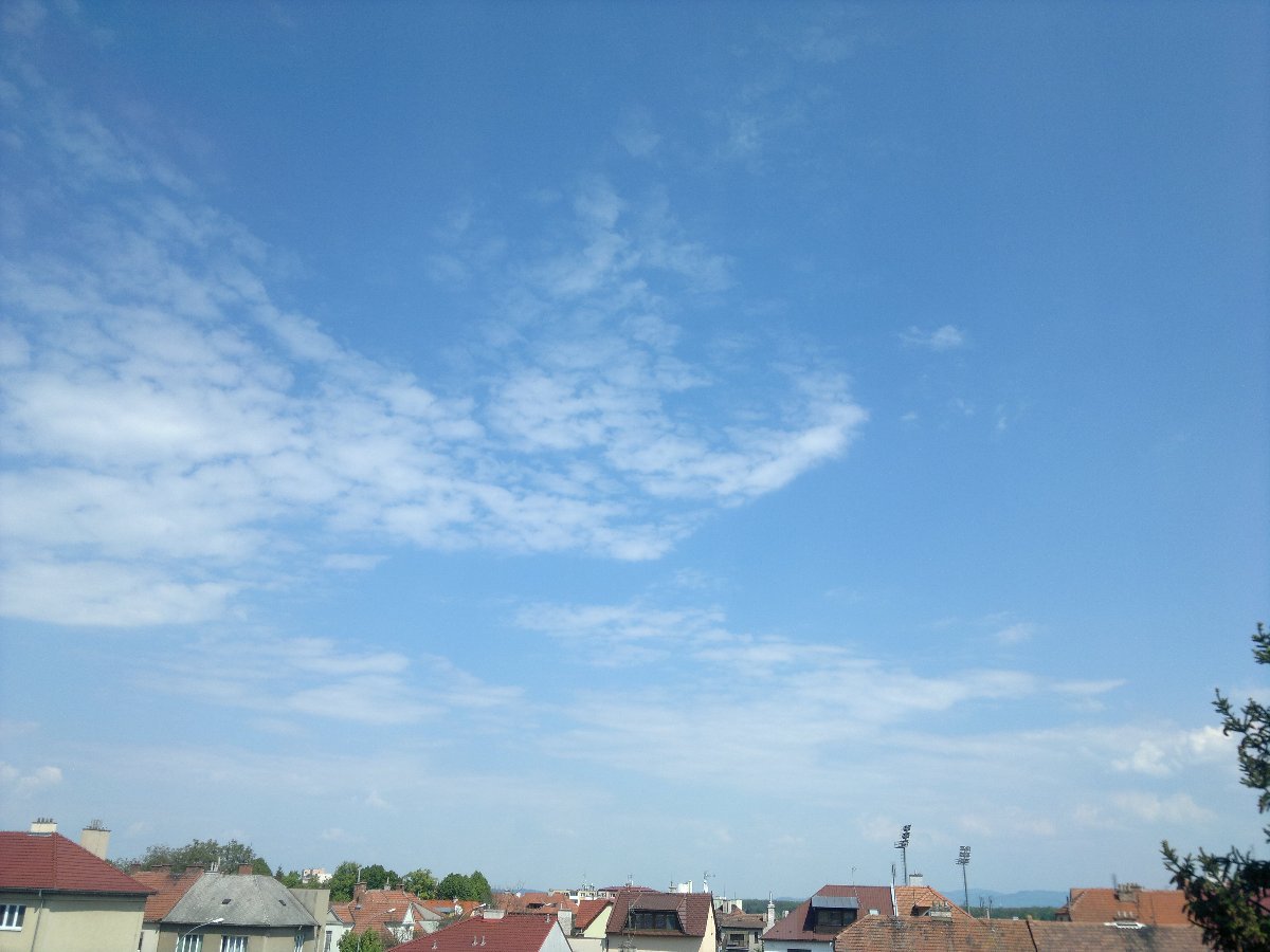 Krásně svítí slunce a je teplo. Na obloze se začínájí objevovat menší cumuly
