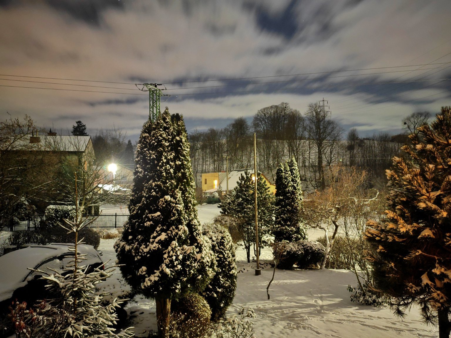 -5,4°C, Zanedbatelné až velmi slabé sněženi, Sníh: 4,5 cm. Trošku se oteplilo, ale posněžuje.