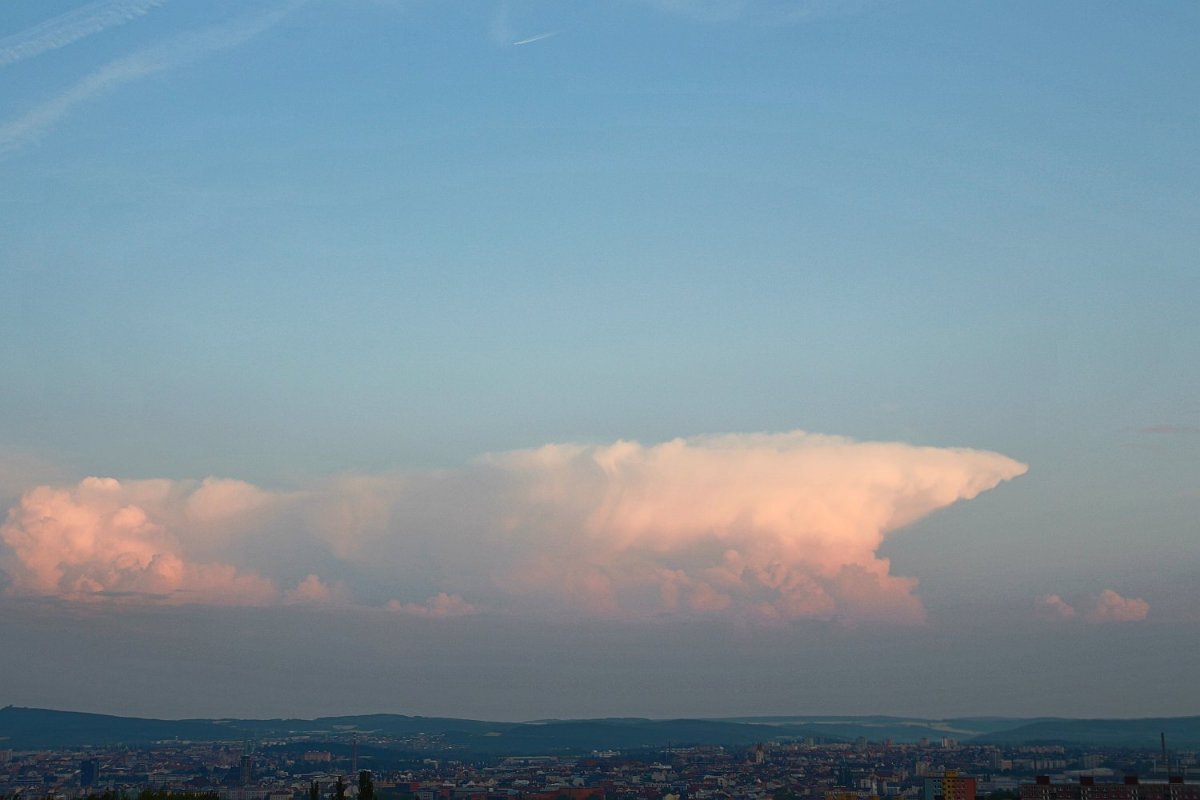 V okolí narůstá nová kupovitá oblačnost (pohled směrem k Šumavě)