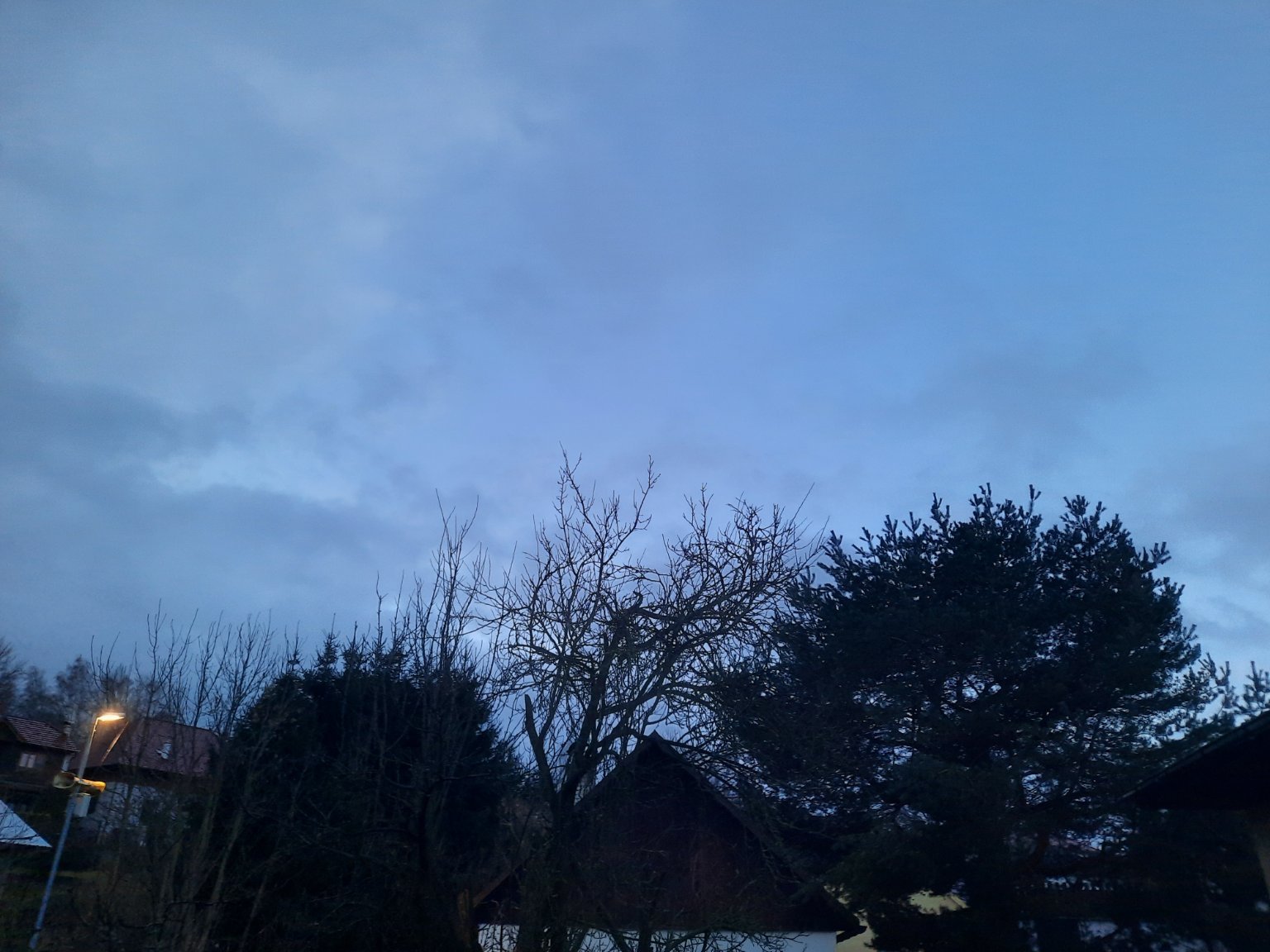 -0,2°C, Zataženo, Sníh: poprašek. Výstrahu před ledovkou nevydali, ale ledovka je, nebýt sněhu, tak je to o zabití...