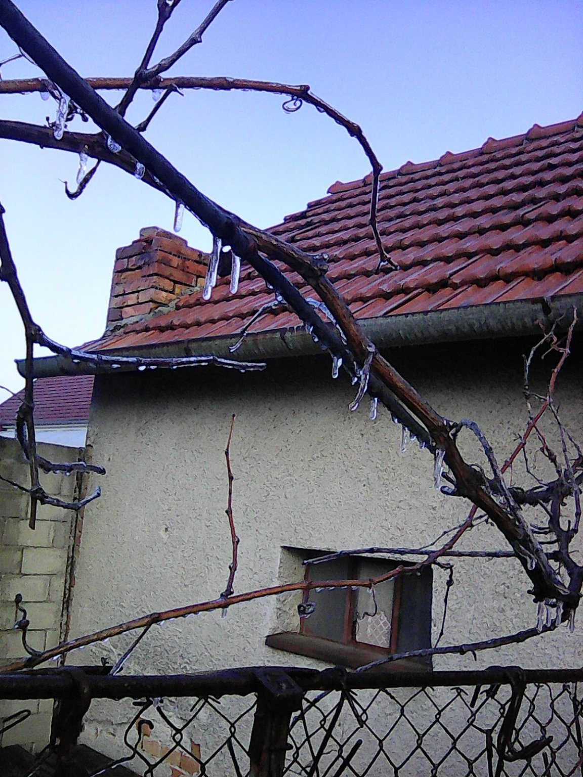 Až extrémní ledovka, nyní už se situace díky prosoleným silnicím a stoupající teplotě pozvolna zlepšuje, ale ráno byla jak na silnicích, tak na železnici doslova kalamitní situace. Na pohled je ale ledovka hezká. Vane slabý jihovýchodní vítr, tlak: 1023