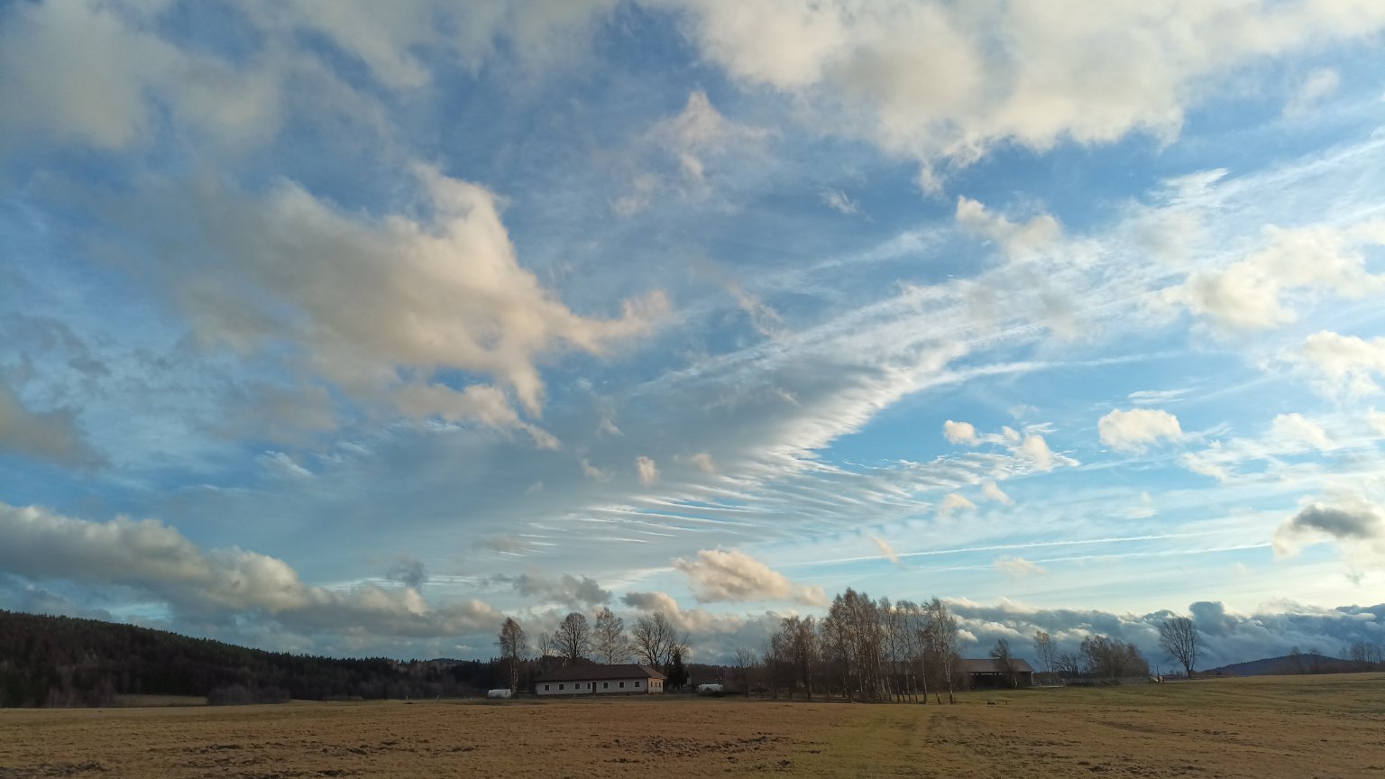 Vydatnější přeháňka, zpočátku padaly i krupičky. Teplota: 8.9°C, Vlhkost: 82%, Tlak: 1017.4 hPa (stoupá), Srážky: 3 mm.