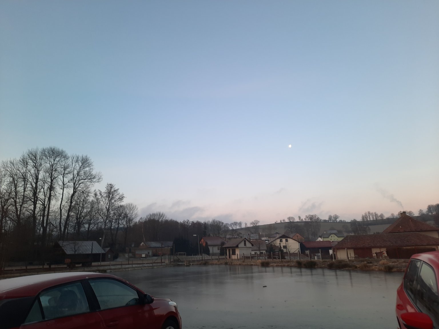 Skoro jasno, bezvětří. Teplota: -5.5°C, Vlhkost: 96%, Tlak: 1034.4 hPa (stabilní).