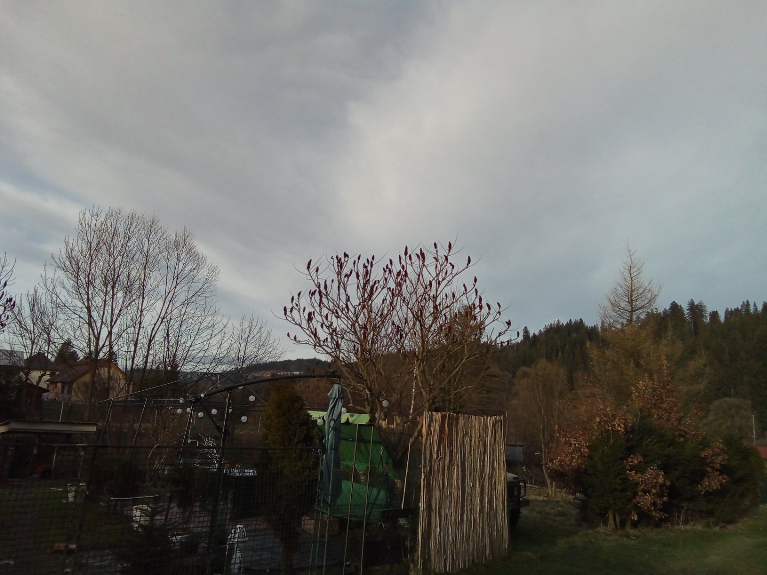 Zataženo, mírný Z vítr, tlak 1012 hPa.