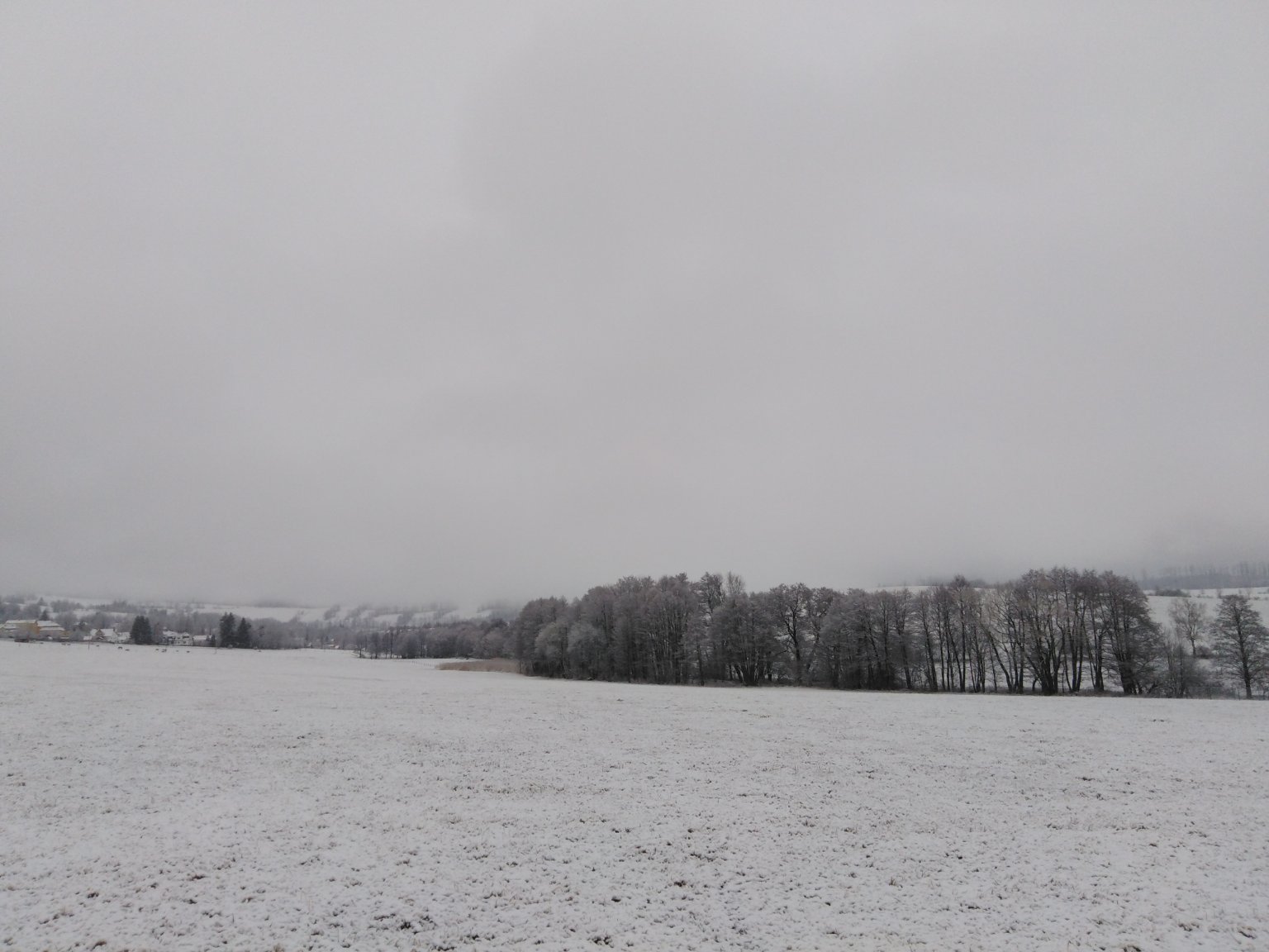 Odtávající poprašek sněhu, vítr JZ 4-10km/h,tlak 1004hpa,vlhkost 84%...