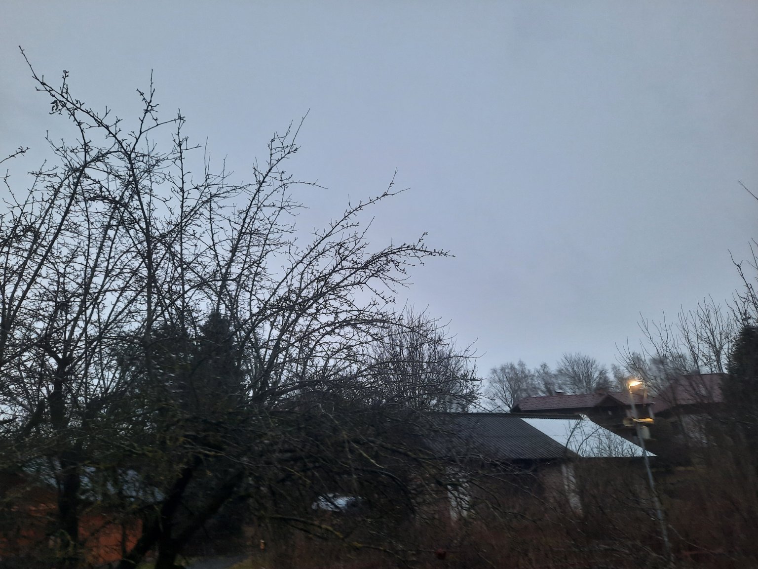 Klidno nebo jen slabý vítr, mírný trvalý déšť, nejnižší teplota v noci byla +4,8°C, tlak 997 hPa.