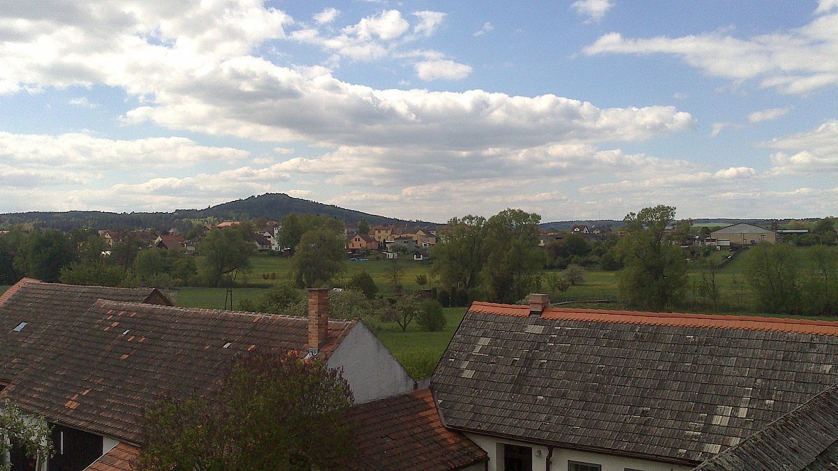 foto z 2014 05 04 v 10:48 zachycuje krásnou modrou oblohu, sem tam s bílým mráčkem a zeleň - fouká trochu studený vítr
