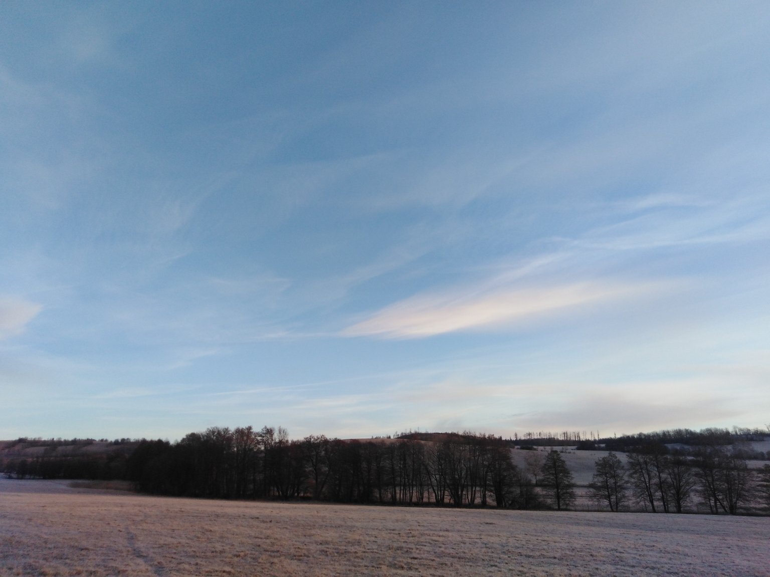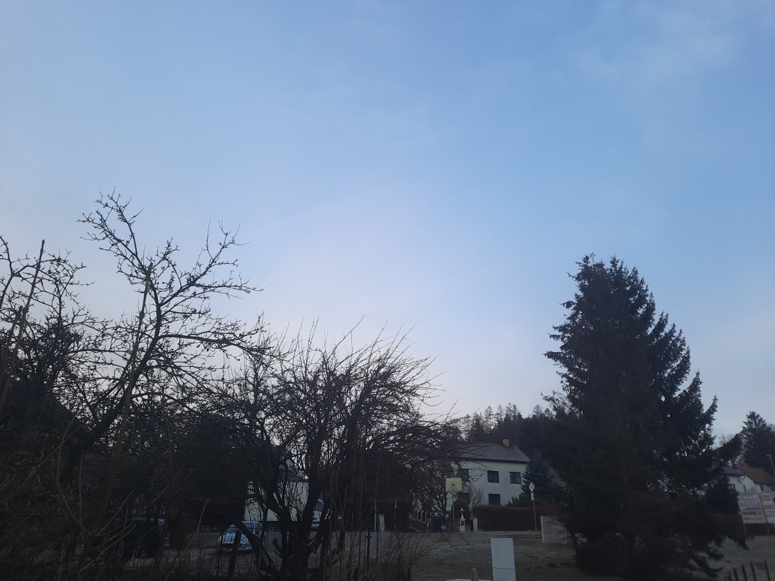 V noci se projasnilo, první lehký mráz snad po 3 týdnech. Sluníčko pomalu vychází a mlha z údolí pomalu ustupuje.