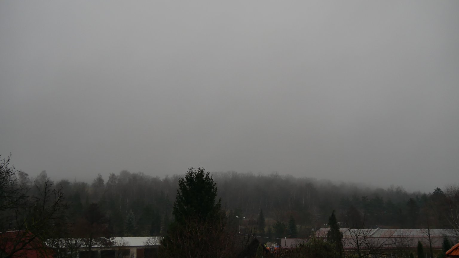 V noci a pěkně pršelo a teď silně mrholí a je bezvětří.
