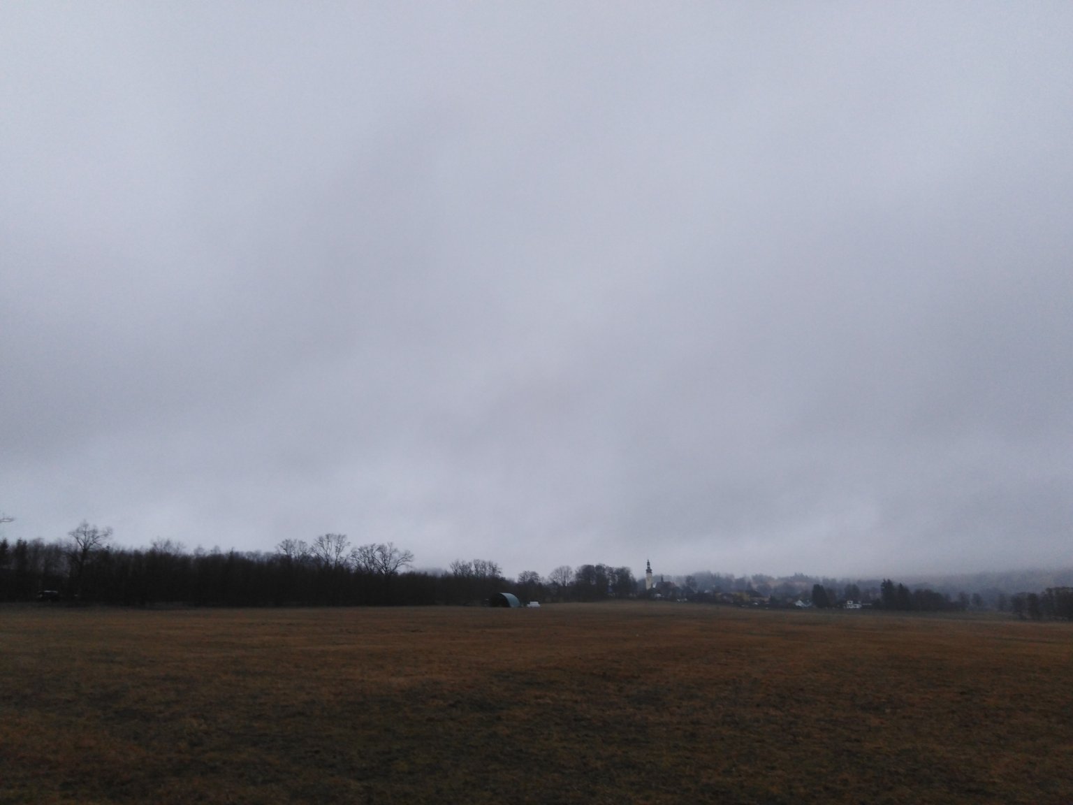 Zataženo, mírný Z vítr, tlak 1017 hPa.