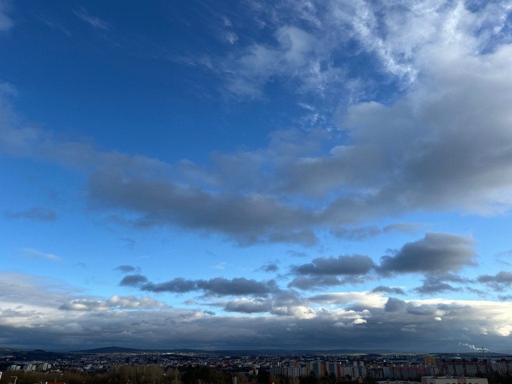 Čerstvý vítr, vyskytují se ojedinělé slabé přeháňky, tlak 1021 hPa.