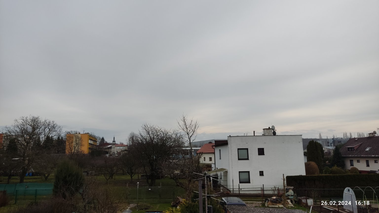 Skoro zataženo. Většinou bezvětří. Vlhkost 88%
